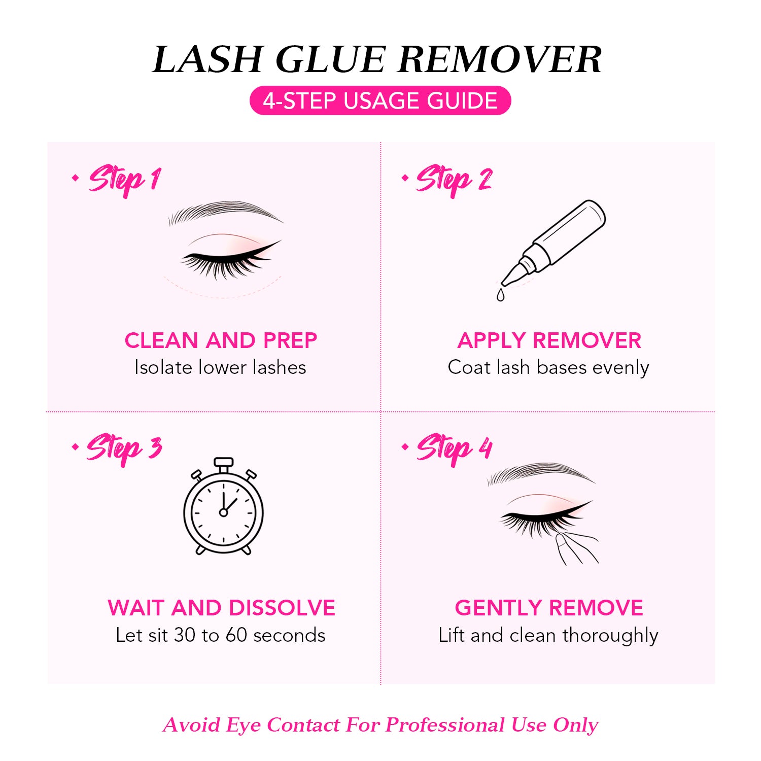 • This remover dissolves eyelash extension glue for fast, effective eyelash extension removal.