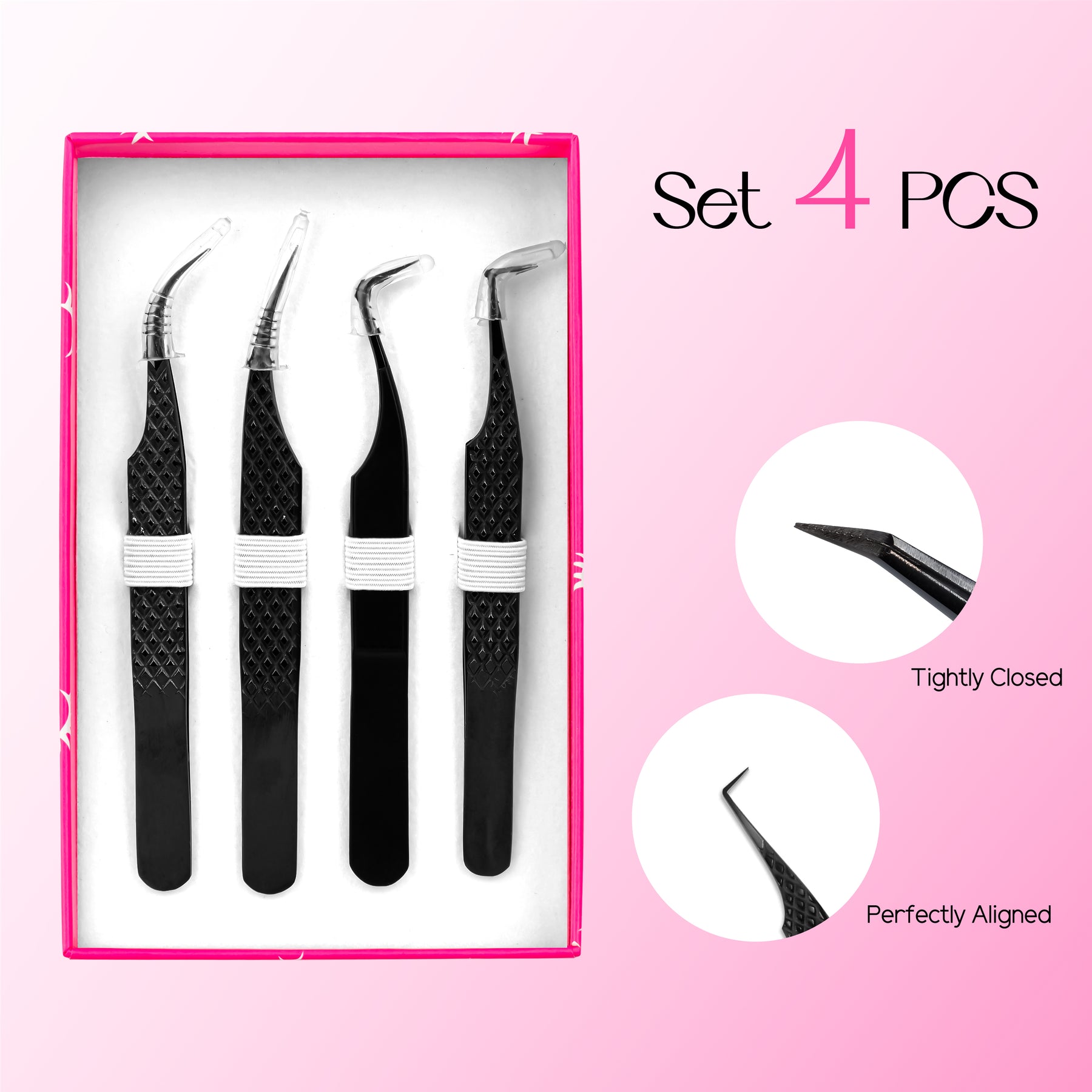 Black Professional Eyelash Extensions Tweezers Kit UK